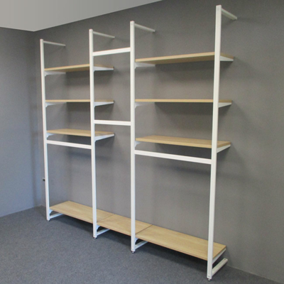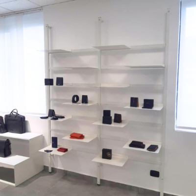Il Sistema Jocker è una soluzione d’arredo essenziale e funzionale, caratterizzata da una cavettatura posteriore discreta che lo rende esteticamente pulito e minimale. Corredato da piani disponibili in diverse essenze e da appenderie, offre grande flessibilità per l’esposizione della merce.